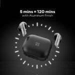 Charge your earbuds for 5 mins, to enjoy 120 mins playtime.