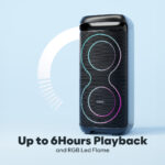 Dynamic RGB lighting effects sync with your music to create an immersive party atmosphere. Multiple lighting modes to match every mood.
